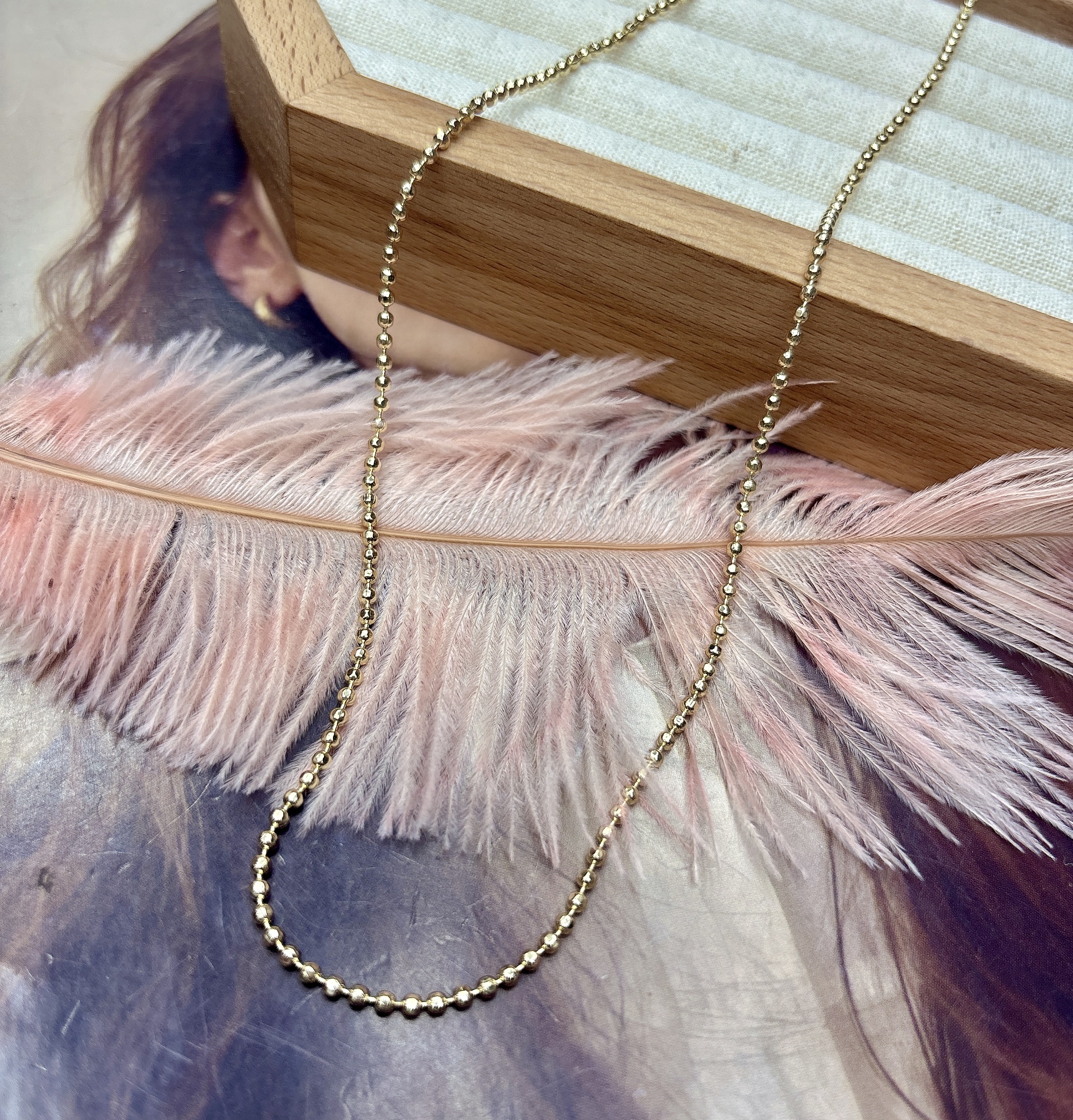 Cadena de orochino con balín de 2mm largo 45cm